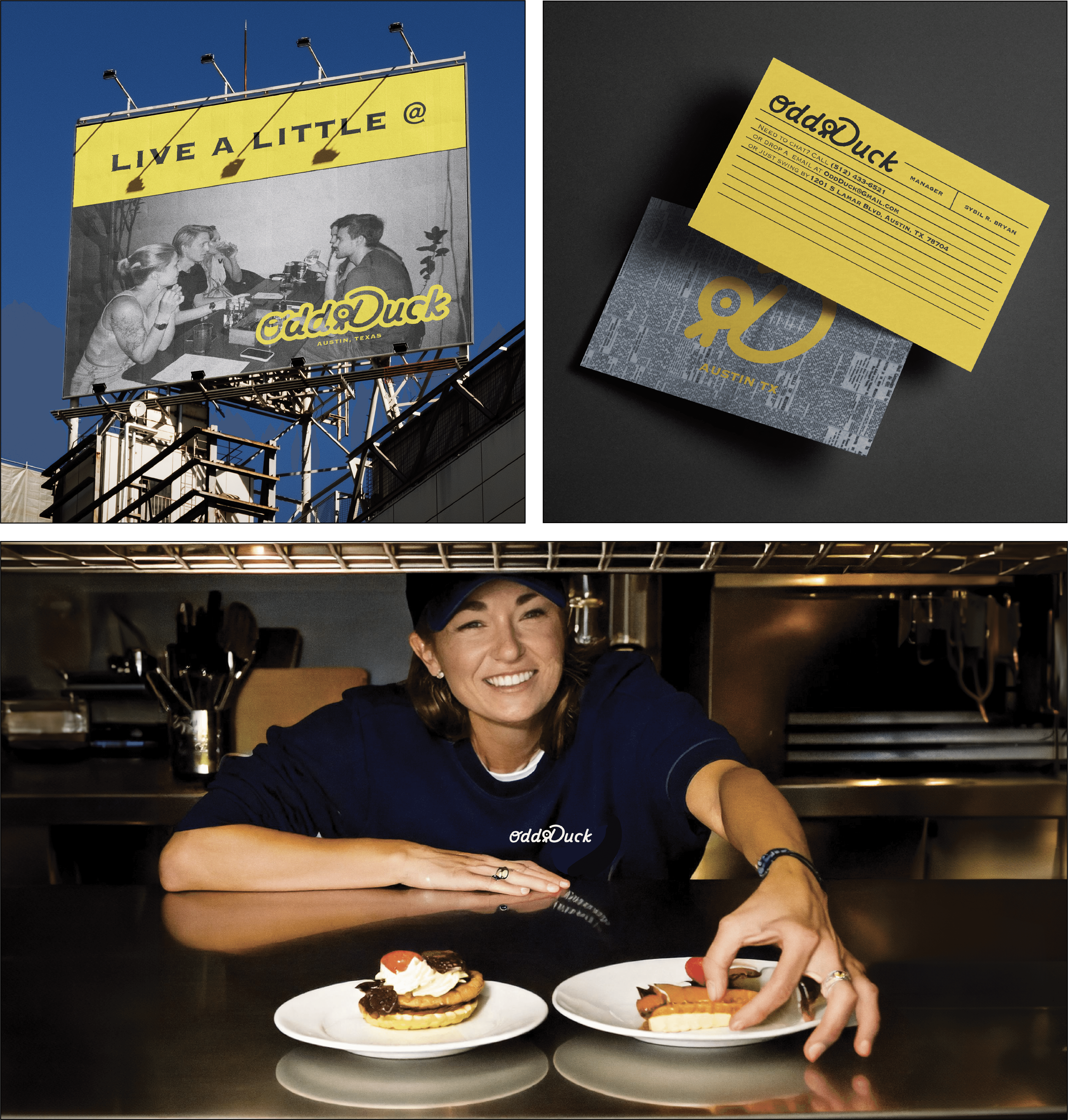 A warm, communal visual identity blending rustic farm-to-table textures with modern Austin casualness, created to reflect a neighborhood restaurant rooted in local food and shared experiences.