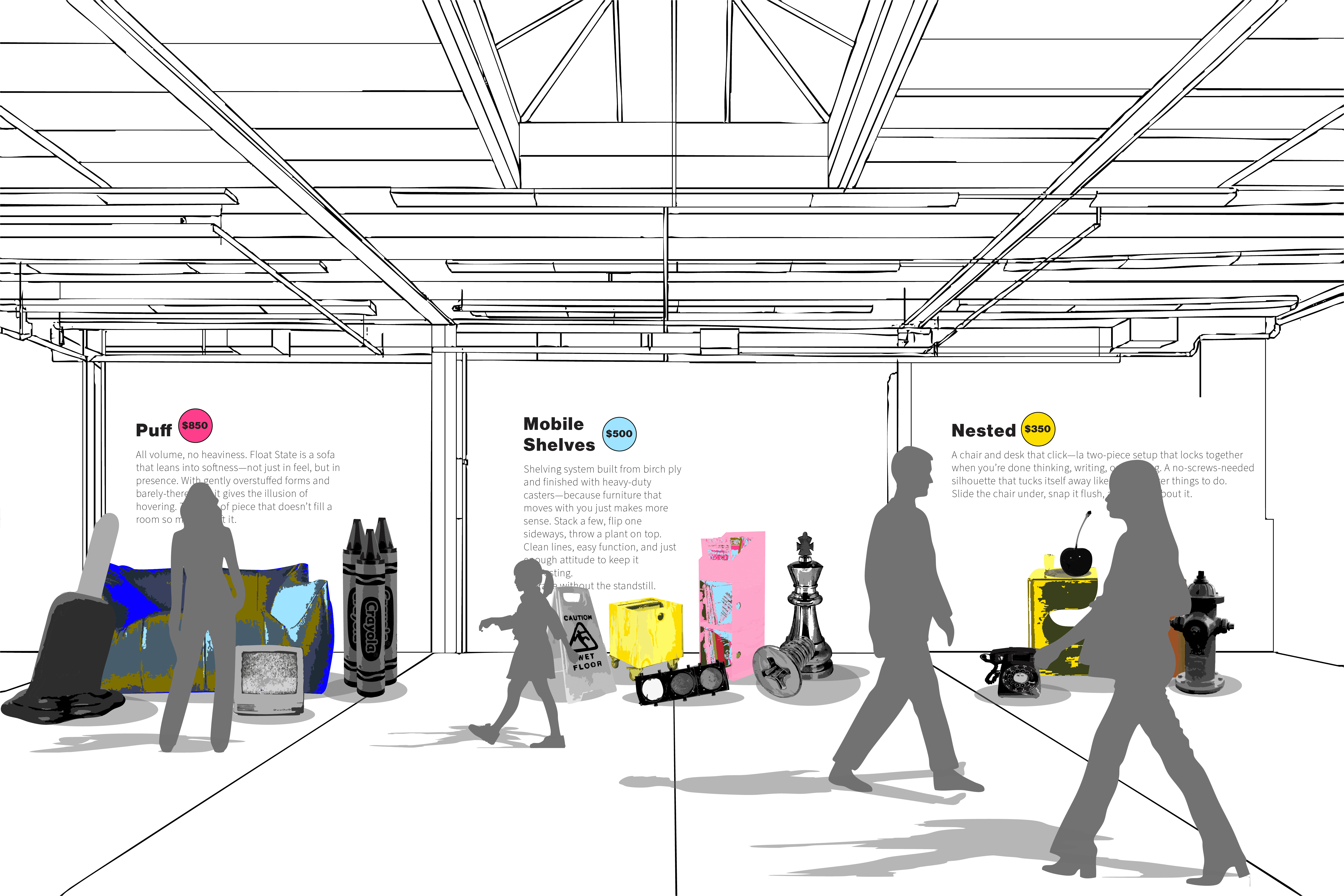 STILL LIFE is an experimental furniture studio concept I developed that merges art-world experimentation with furniture functionality. For this project, I created the full brand identity and environmental design for the flagship storefront.